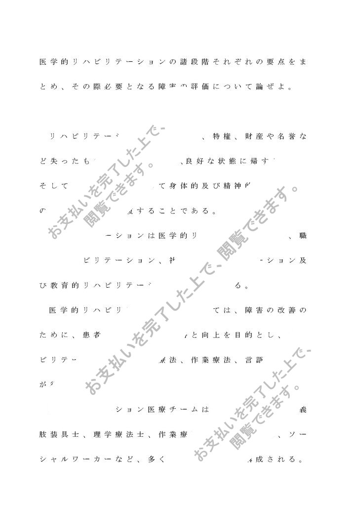 医学的リハビリテーションの諸段階それぞれの要点をまとめ、その際必要となる障害の評価について論ぜよ。