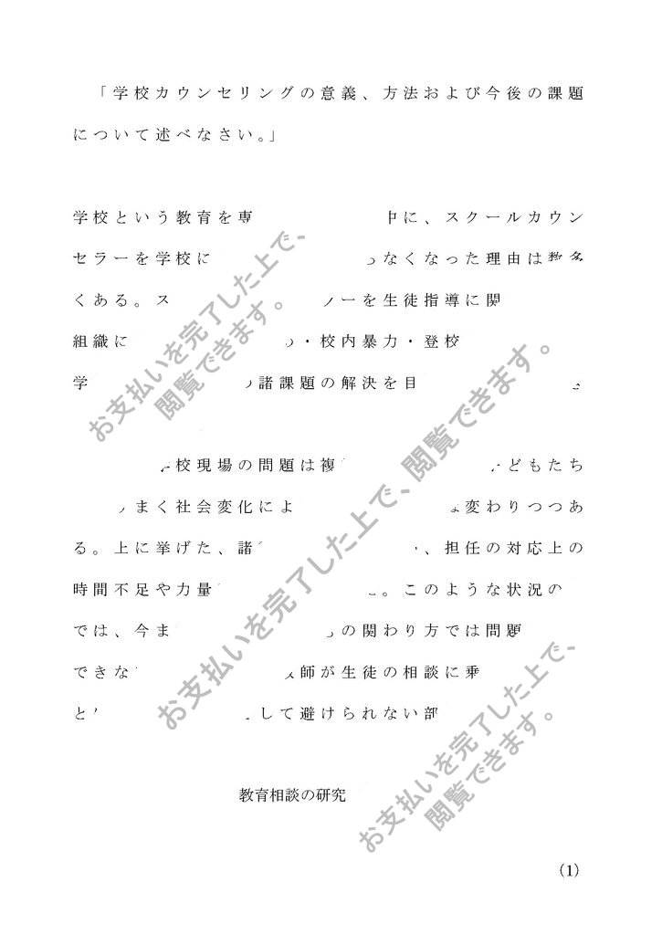 「学校カウンセリングの意義、方法および今後の課題について述べなさい。」