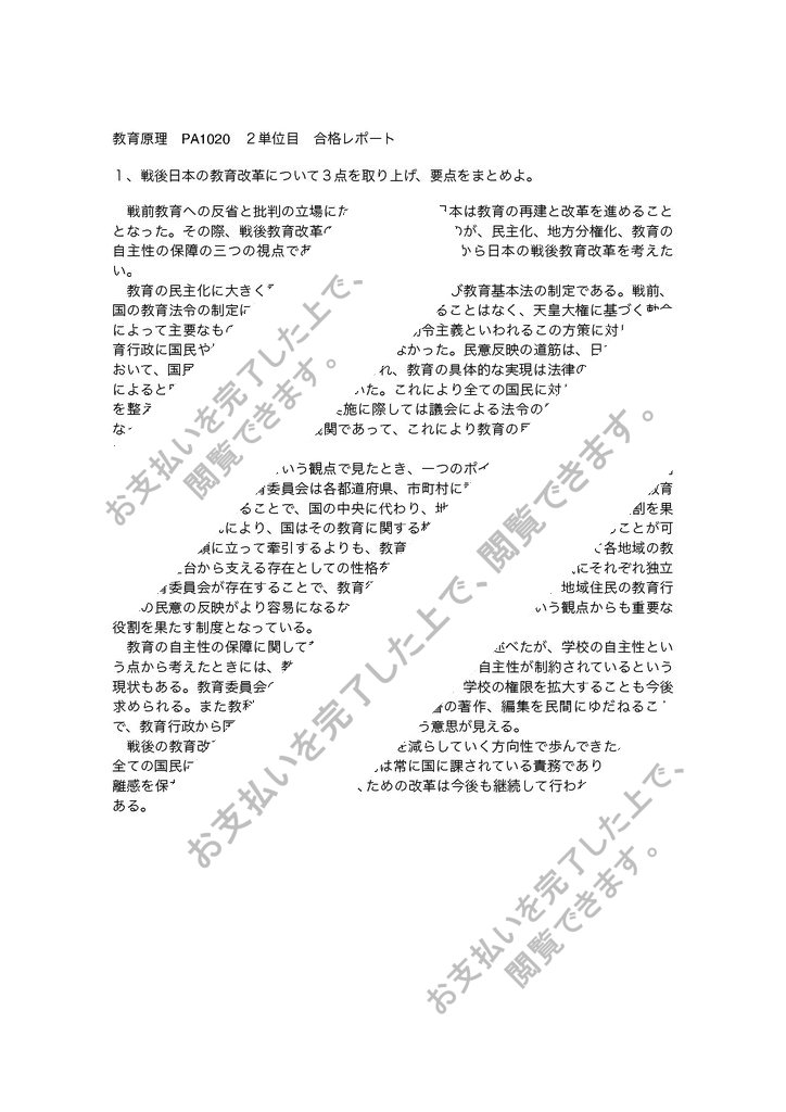 明星大学通信教育学部 教育原理 2単位目 合格レポートです。