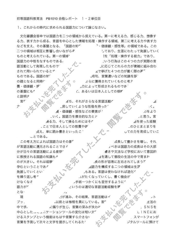 初等国語科教育法 PB1010合格レポート 1・2単位目