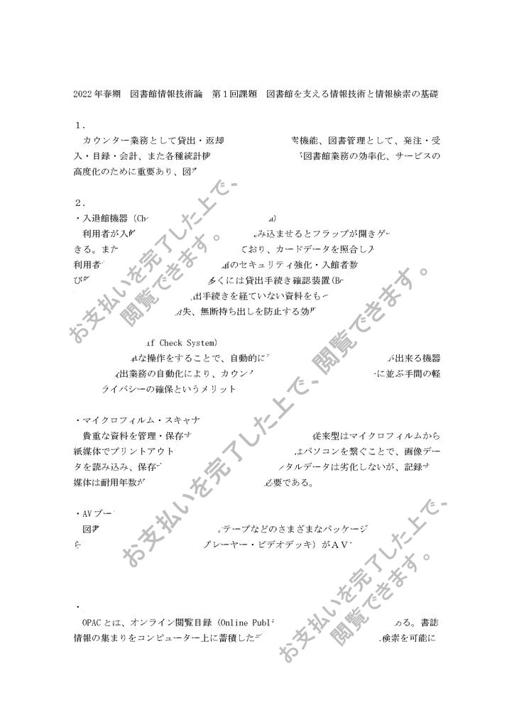 2022年春期 図書館情報技術論 第1回課題 図書館を支える情報技術と情報検索の基礎