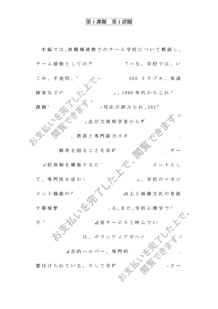 ②他職種連携でのチーム学校について概説し、チーム援助としての支援について論述してください。