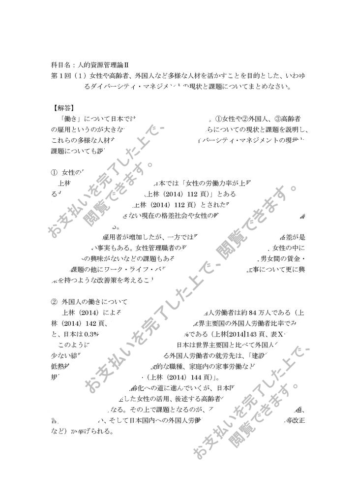 課 題:第1回(1)女性や高齢者、外国人など多様な人材を活かすことを目的とした、いわゆるダイバーシティ・マネジメントの現状と課題についてまとめなさい。