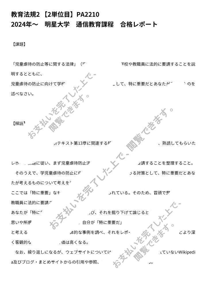 2024年〜課題になっている、教育法規2の2単位目の合格レポートです。