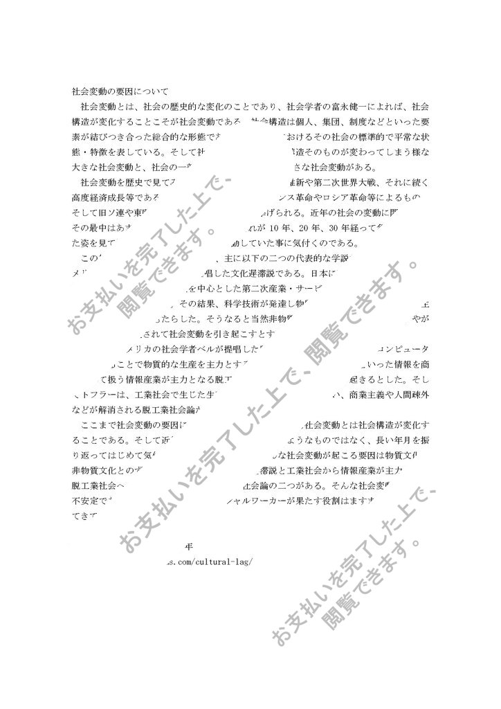 この社会変動が起こる要因として、主に以下の二つの代表的な学説がある。一つ目がアメリカの社会学者オグバーンが提唱した文化遅滞説である。日本に限らず1960年代は第一次産業の従業者は減り、工業を...