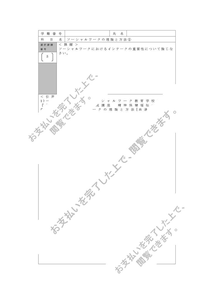 科目名 ソーシャルワークの理論と方法①