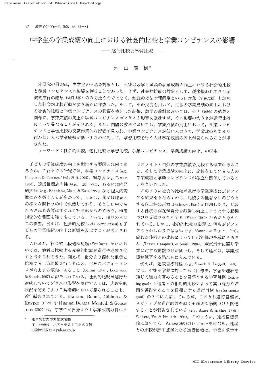 中学生の学業成績の向上における社会的比較と学業コンピテンスの影響 遂行比較と学習比較