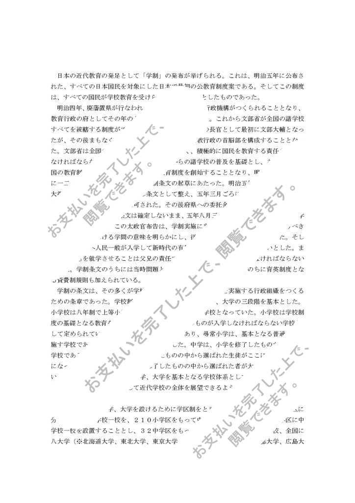 日本の近代教育の発足として「学制」の発布が挙げられる。これは、明治五年に公布された、すべての日本国民を対象にした日本で最初の公教育制度案である。そしてこの制度は、すべての国民が学校教育を受けられることを目的としたものであった。