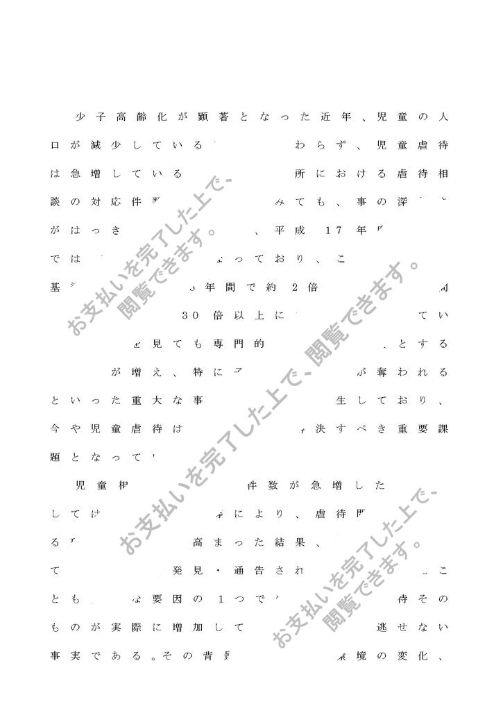 少子高齢化が顕著となった近年、児童の人口が減少しているにもかかわらず、児童虐待は急増している。児童相談所における虐待相談の対応件数の推移からみても、事の深刻さがはっきりとみてとれ、平成17年度の実績では34,472件となっており、これを最新の基準とすると、5年間で約2倍、また15年間で見ると実に30倍以上にも膨れあがっている。内容を見ても専門的な援助を必要とするケースが増え、特に子どもの生命が奪われるといった重大な事件も数多く発生しており、今や児童虐待は社会全体で解決すべき重要課題となっている。