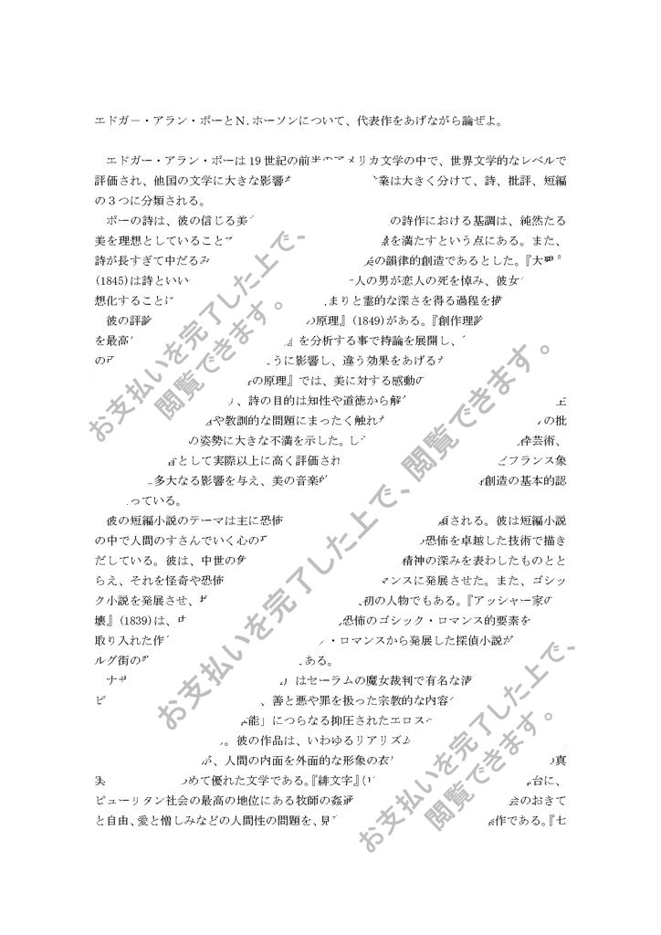エドガ-・アラン・ポーとN.ホーソンについて、代表作をあげながら論ぜよ。