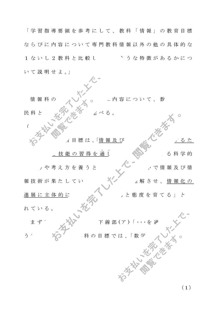 「学習指導要領を参考にして、教科「情報」の教育目標ならびに内容について専門教科情報以外の他の具体的な1ないし2教科と比較してどのような特徴があるかについて説明せよ。」
