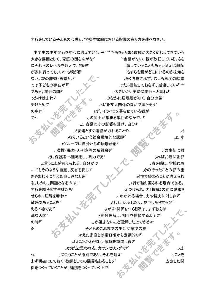 非行をしている子どもの心理と、学校や家庭における指導の在り方を述べなさい。