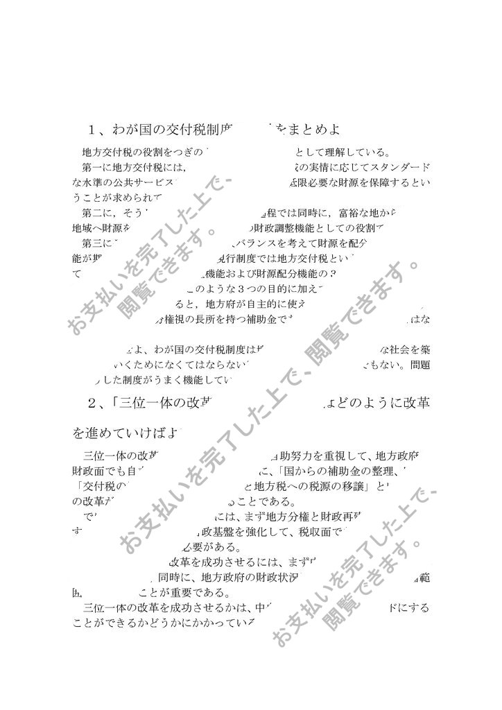 1、わが国の交付税制度の特徴をまとめよ