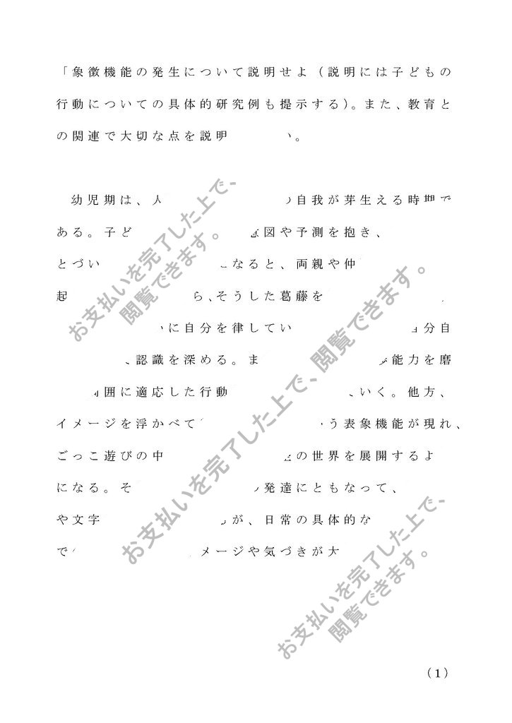 「象徴機能の発生について説明せよ(説明には子どもの行動についての具体的研究例も提示する)。また、教育との関連で大切な点を説明しなさい。