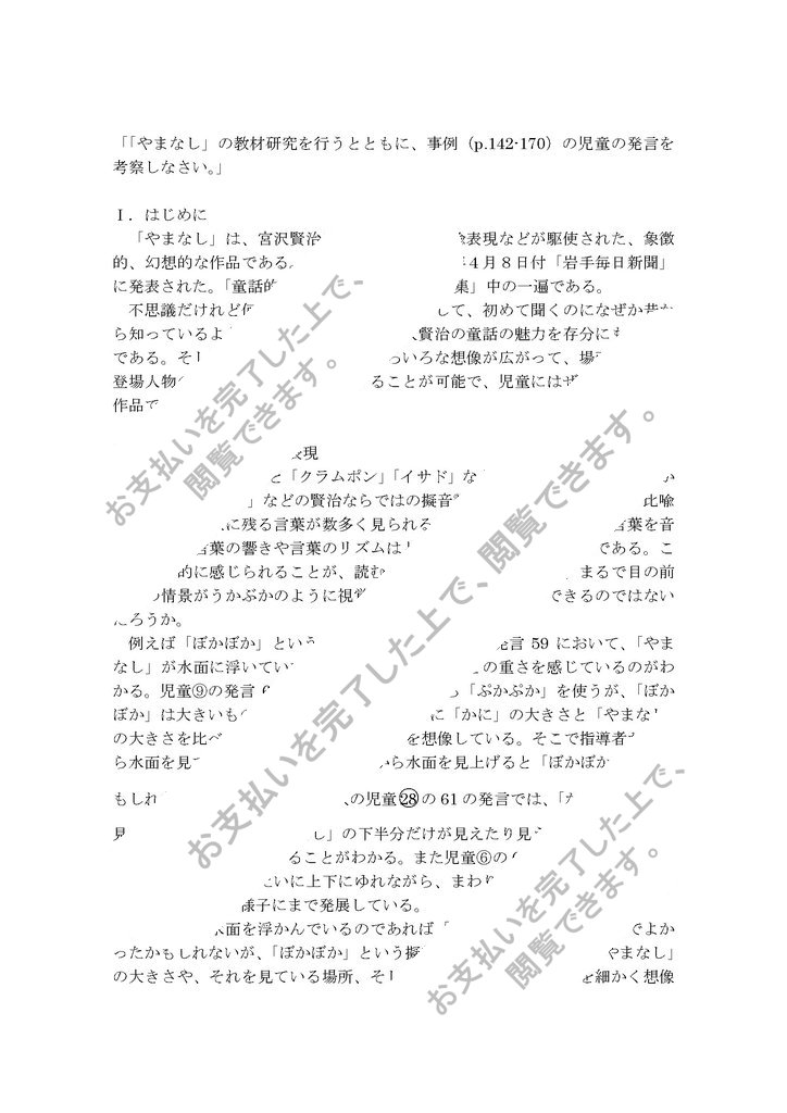 「「やまなし」の教材研究を行うとともに、事例(p.142-170)の児童の発言を考察しなさい。」