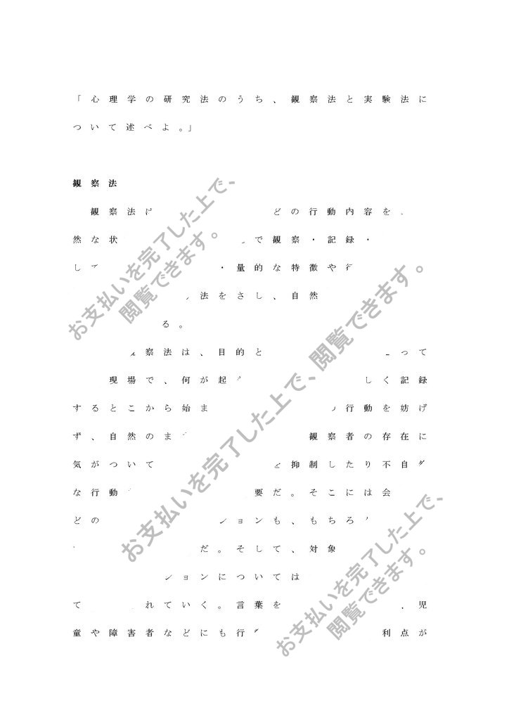 「心理学の研究法のうち、観察法と実験法について述べよ。」