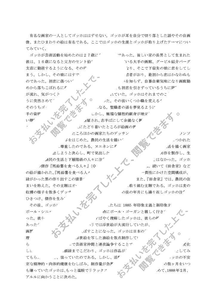 有名な画家の一人としてゴッホははずせない。ゴッホが耳を自分で切り落とした話やその自画像、またひまわりの絵は有名である。ここではゴッホの生涯とゴッホが取り上げたテーマについてみていく。