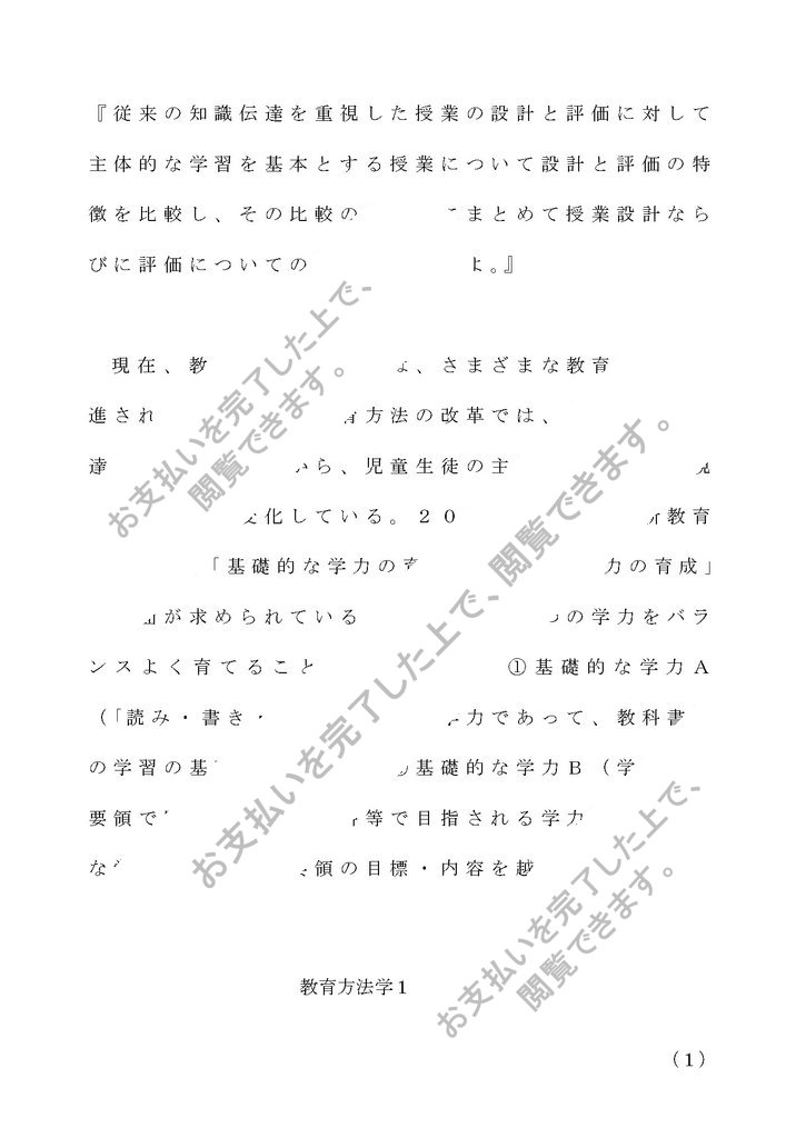 『従来の知識伝達を重視した授業の設計と評価に対して主体的な学習を基本とする授業について設計と評価の特徴を比較し、その比較の視点毎にまとめて授業設計ならびに評価についての留意点を述べよ。』