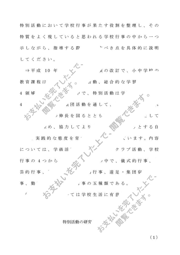 特別活動において学校行事が果たす役割を整理し、その特質をよく現していると思われる学校行事の中から一つ示しながら、指導する際に注意すべき点を具体的に説明してください。