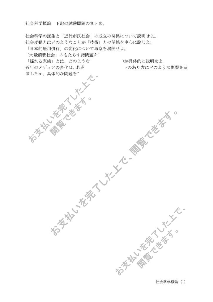 社会科学概論 下記の試験問題のまとめ。