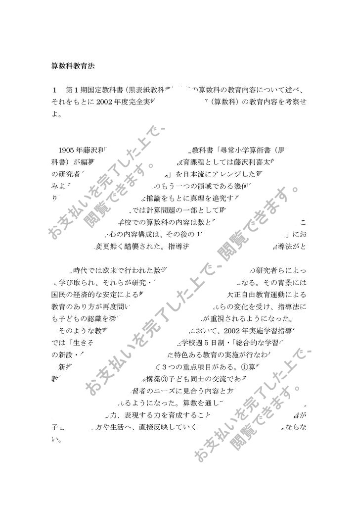 1 第1期国定教科書(黒表紙教科書)時代の算数科の教育内容について述べ、それをもとに2002年度完全実施の学習指導要領(算数科)の教育内容を考察せよ。