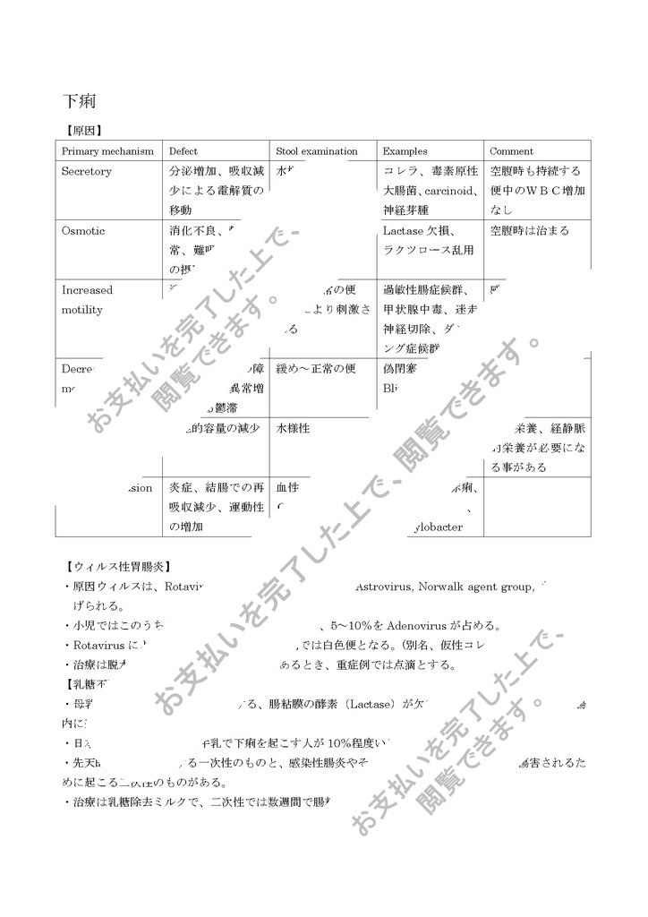 便中のWBC増加なし Osmotic 消化不良、輸送異常、難吸収性物質の摂取 水様性、酸性、