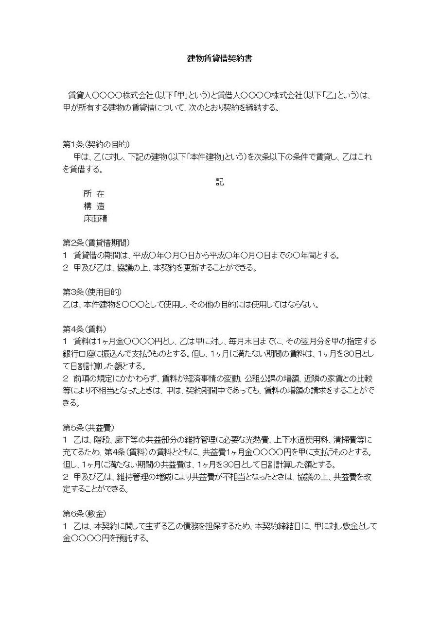 賃貸人○○○○株式会社(以下「甲」という)と賃借人○○○○株式会社(以下「乙」という)は、甲が所有する建物の賃貸借について、次のとおり契約を締結する。
