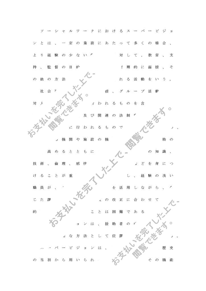ソーシャルワークにおけるスーパービジョンとは、一定の業務にあたって多くの場合、より経験の少ない働き手に対して、教育、支持、監督の目的を持って、定期的に面接、その他の方法を用いて提供される活動をいう。