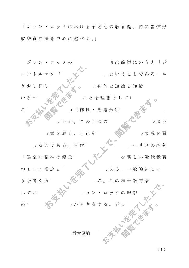 「ジョン・ロックにおける子どもの教育論、特に習慣形成や賞罰法を中心に述べよ。」
