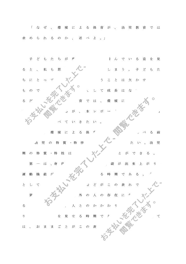 「なぜ、環境による保育が、幼児教育では求められるのか、述べよ。」