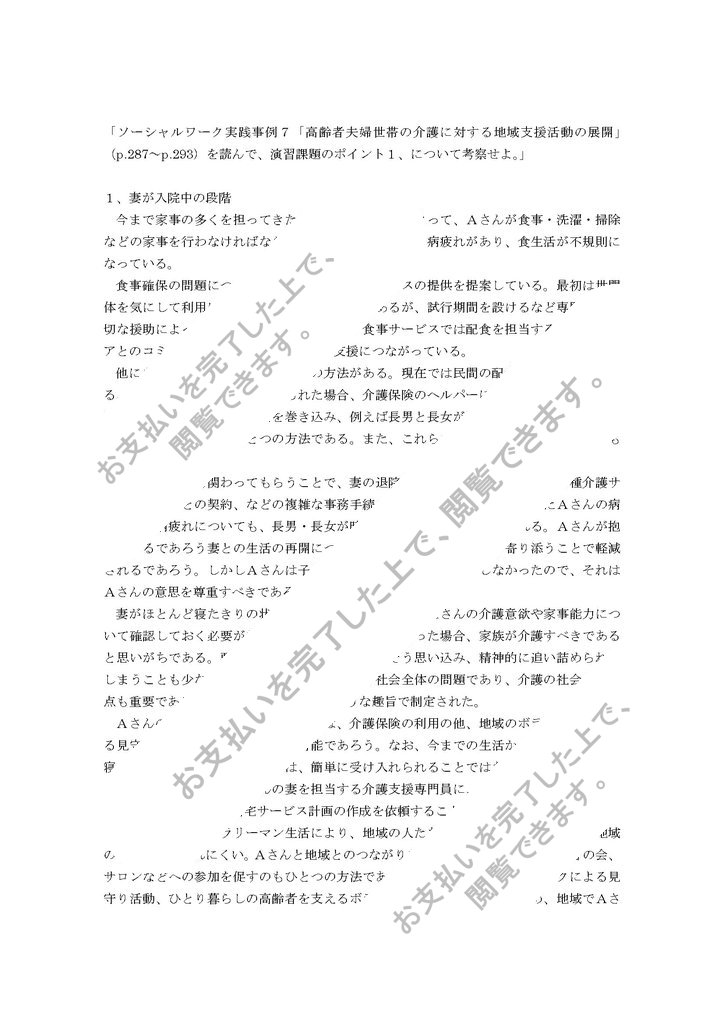 「ソーシャルワーク実践事例7「高齢者夫婦世帯の介護に対する地域支援活動の展開」(p.287~p.293)を読んで、演習課題のポイント1、について考察せよ。」