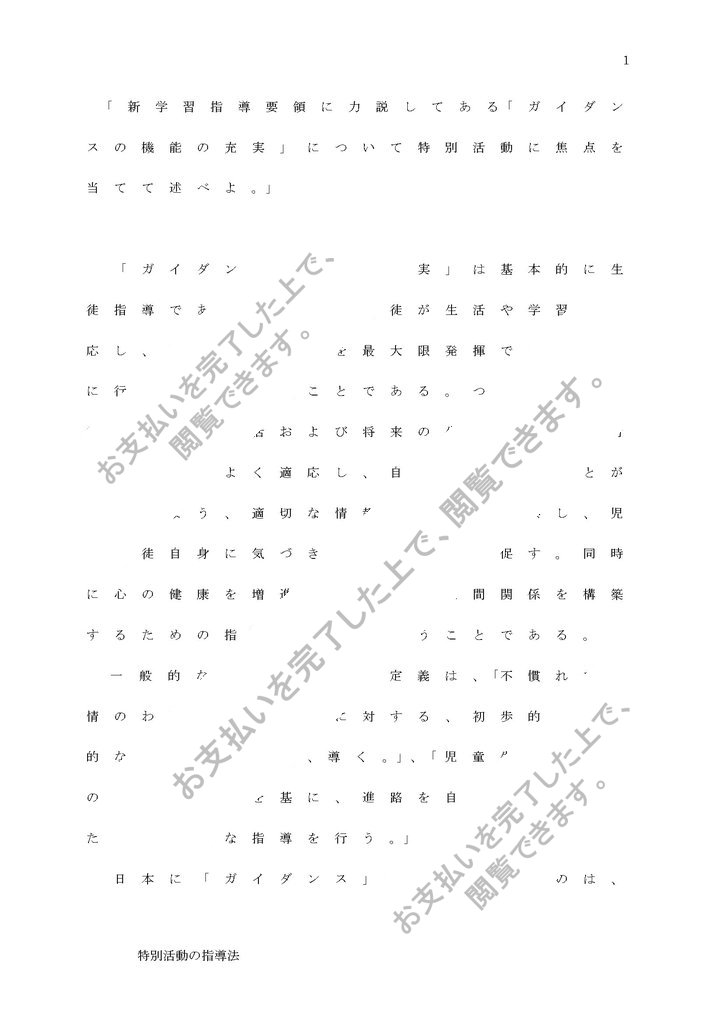 「新学習指導要領に力説してある「ガイダンスの機能の充実」について特別活動に焦点を当てて述べよ。」