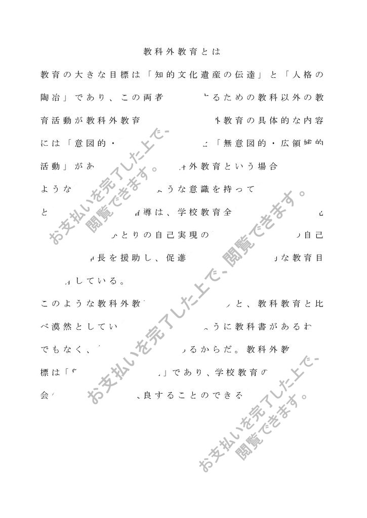 教育の大きな目標は「知的文化遺産の伝達」と「人格の陶冶」であり、この両者を達成するための教科以外の教育活動が教科外教育である。教科外教育の具体的な内容には「意図的・限定的な活動」と「無意図的・広領域的活動」があり、一般的に教科外教育という場合、前者のような活動を、後者のような意識を持って展開されることが多い。教科外指導は、学校教育全体が目的とする児童・生徒一人ひとりの自己実現の達成、そのための自己教育力の伸長を援助し、促進するという積極的な教育目的を有している。 このような教科外教育の構造はというと、教科教育と比べ漠然としている。教科教育のように教科書があるわけでもなく、担当者...