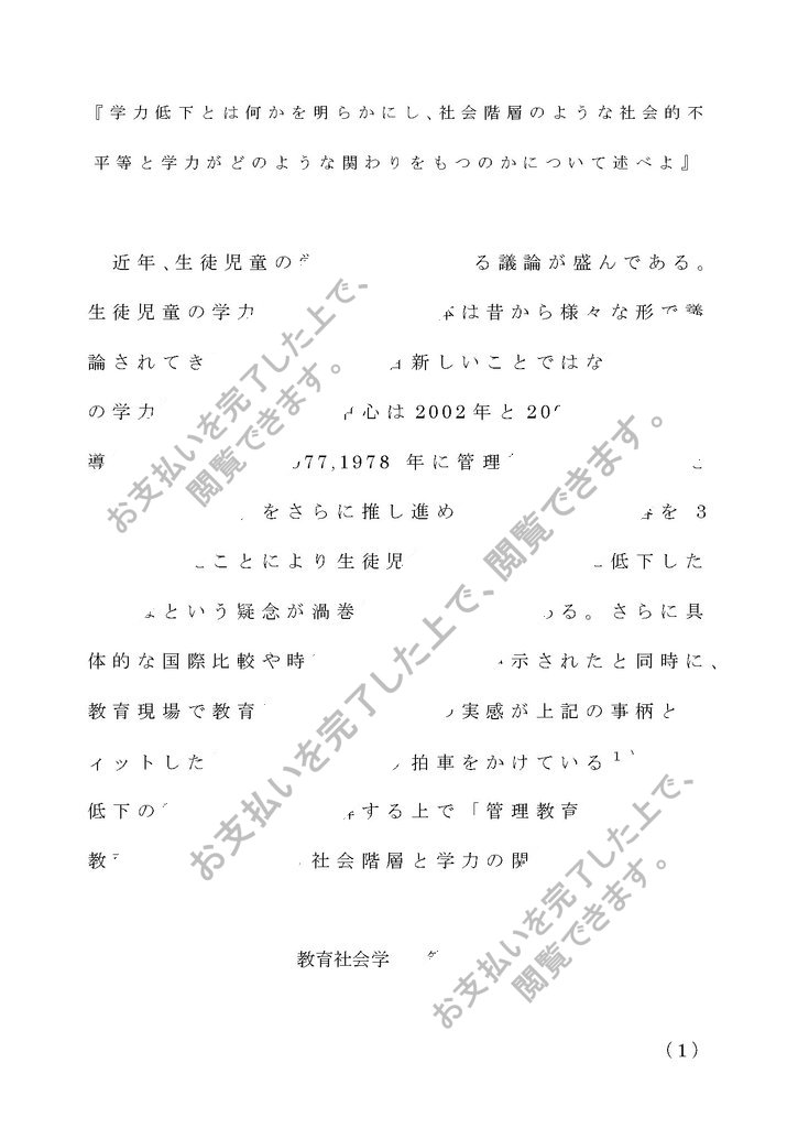 『学力低下とは何かを明らかにし、社会階層のような社会的不平等と学力がどのような関わりをもつのかについて述べよ』