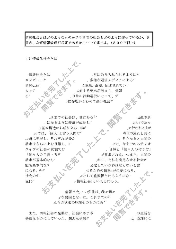 情報社会とはどのようなものか?今までの社会とどのように違っているか、を書き、なぜ情報倫理が必要であるかについて述べよ。(800字以上)