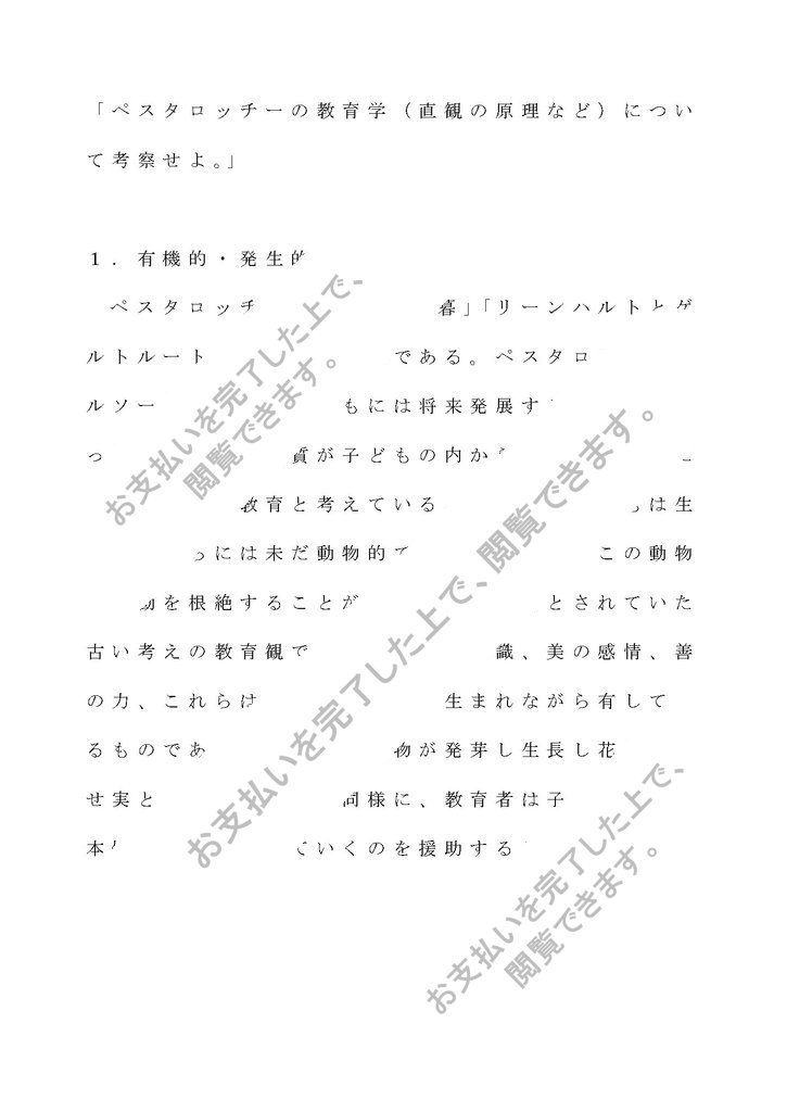 「ペスタロッチーの教育学(直観の原理など)について考察せよ。」