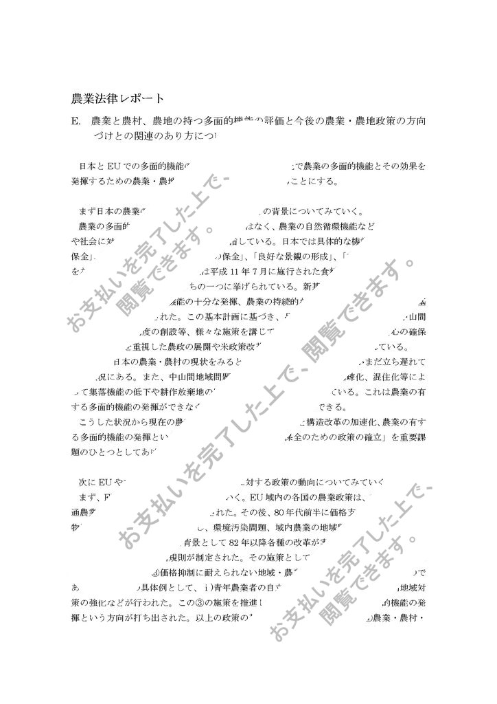 E. 農業と農村、農地の持つ多面的機能の評価と今後の農業・農地政策の方向づけとの関連のあり方について。