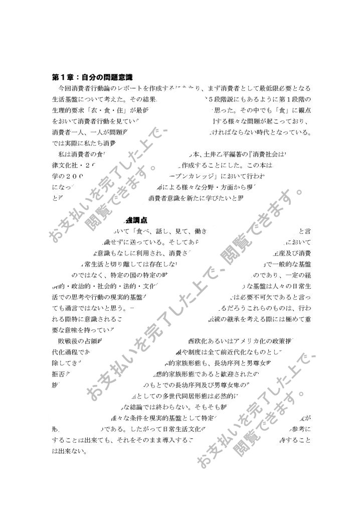 私は消費者の食に関する問題定義がされている本、土井乙平編著の『消費社会はいま』(法律文化社・2004年)を読んでレポートを作成することにした。この本は、大阪経済大学の2003年秋学期「地域政策学科オープンカレッジ」において行われた講演が書籍版になったものである。計11名の講師による様々な分野・方面から現代社会における消費と消費者についての話を通して、消費者意識を新たに学びたいと思う。