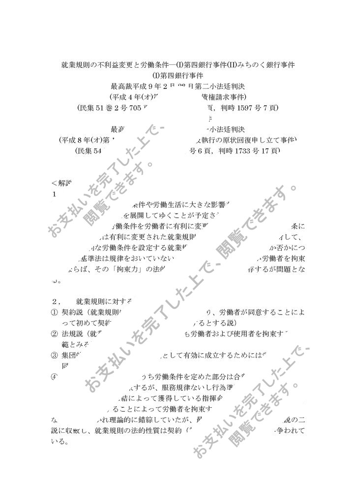 就業規則の不利益変更と労働条件―(I)第四銀行事件(II)みちのく銀行事件