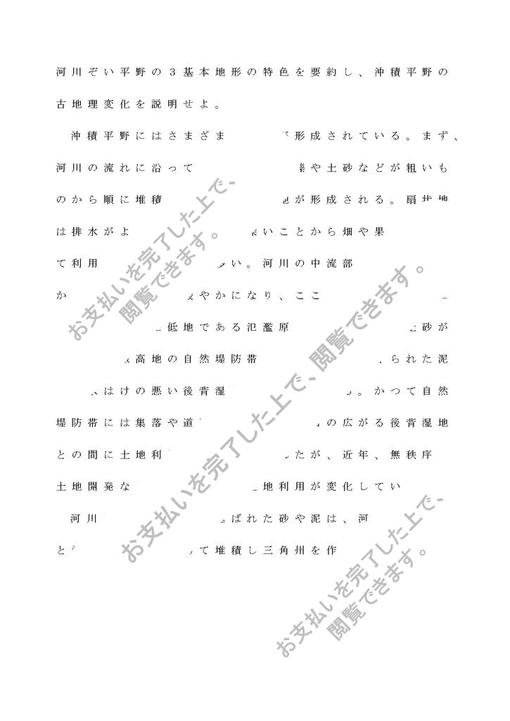 河川ぞい平野の3基本地形の特色を要約し、沖積平野の古地理変化を説明せよ。