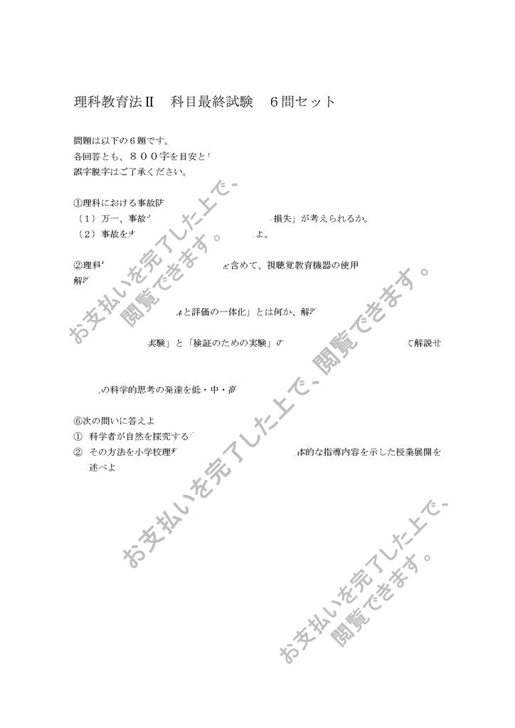 理科教育法Ⅱ 科目最終試験 6問セット