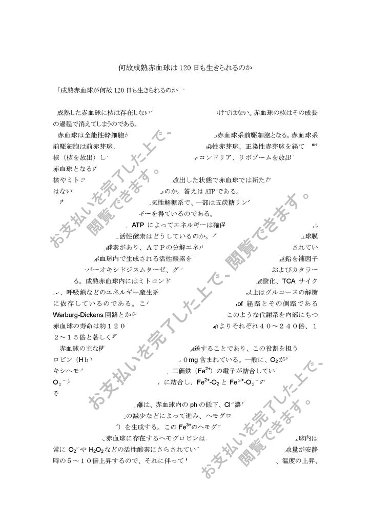 「成熟赤血球が何故120日も生きられるのか。」