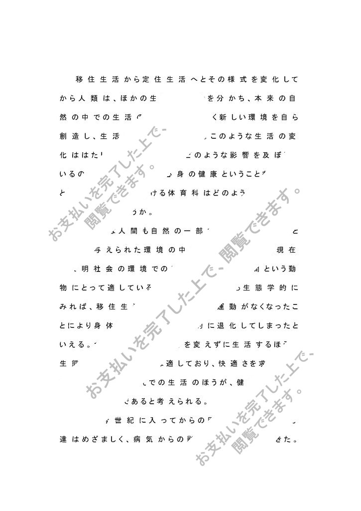 移住生活から定住生活へとその様式を変化してから人類は、ほかの生物とたもとを分かち、本来の自然の中での生活の代わりにまったく新しい環境を自ら創造し、生活していくことになる。このような生活の変化ははたして人間の心身にどのような影響を及ぼしているのであろうか。また、心身の健康ということを考えたとき、学校教育における体育科はどのような役割を果たすべきなのだろうか。