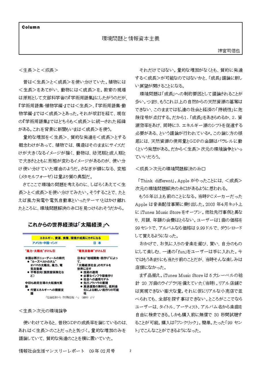情報社会生活マンスリーレポート 09年02月号