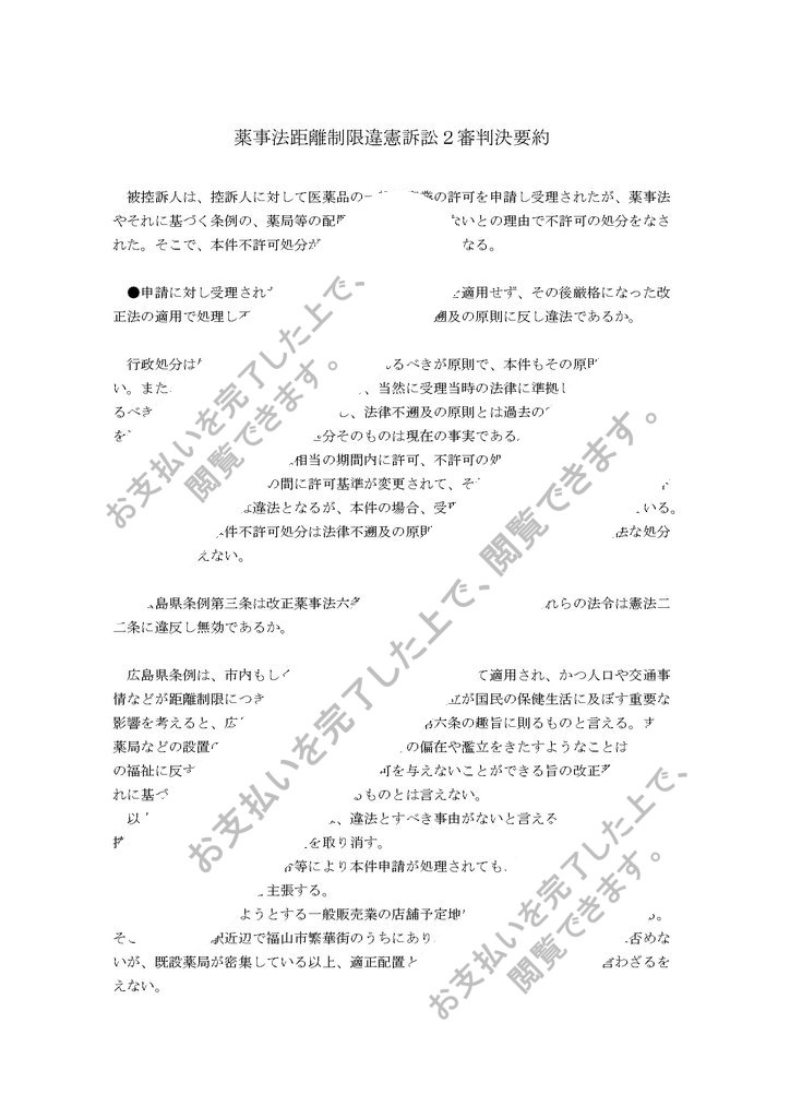 薬事法距離制限違憲訴訟2審判決要約