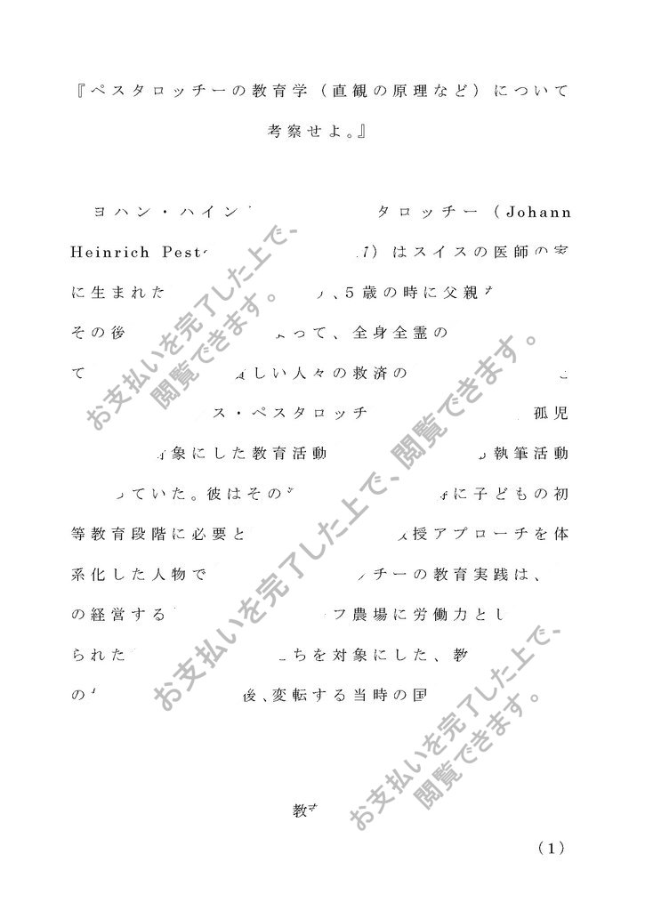 『ペスタロッチーの教育学(直観の原理など)について考察せよ。』