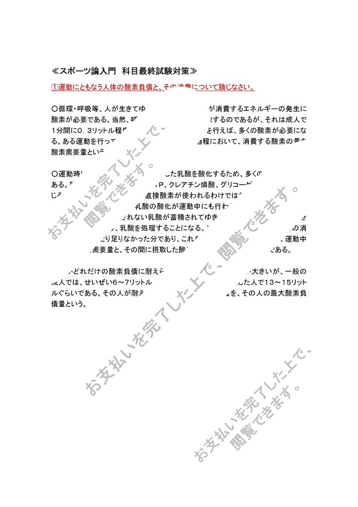 ①運動にともなう人体の酸素負債と、その消費について論じなさい。