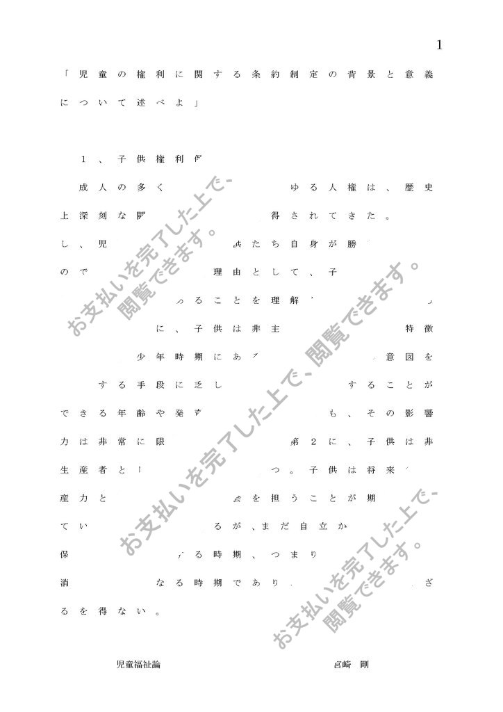 「児童の権利に関する条約制定の背景と意義について述べよ」