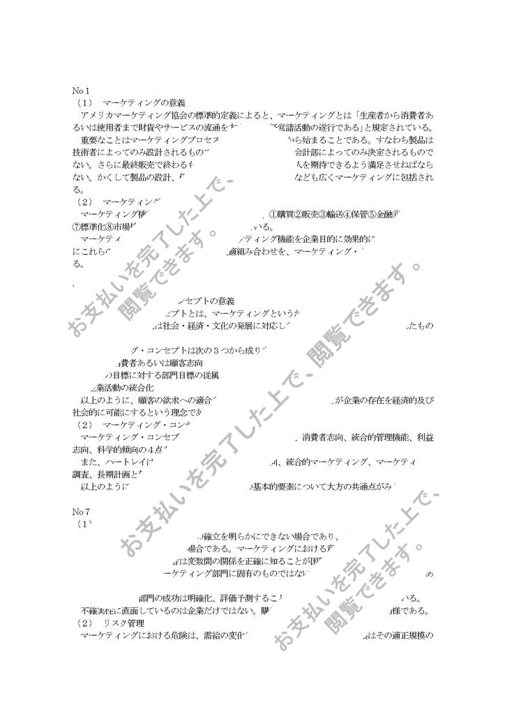 マーケティング論 ①マーケティングの意義とマーケティング機能の優位性②マーケティング・コンセプトの意義と基本的要素③不確実性とリスク管理について④マーケティング批判と企業責任 |