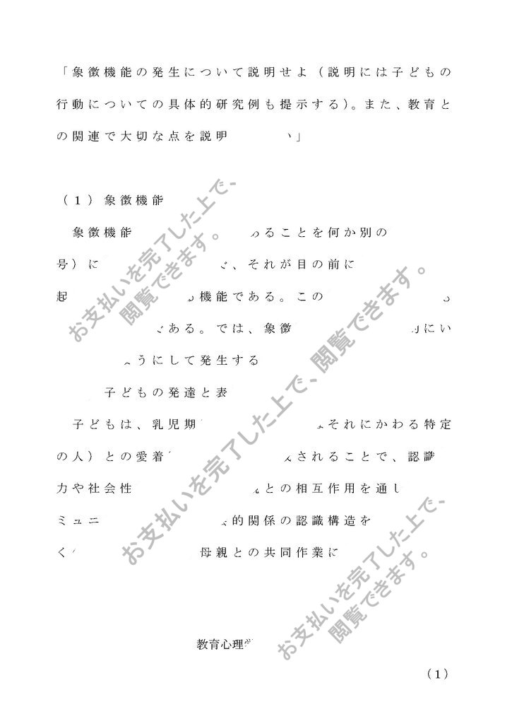 「象徴機能の発生について説明せよ(説明には子どもの行動についての具体的研究例も提示する)。また、教育との関連で大切な点を説明しなさい」